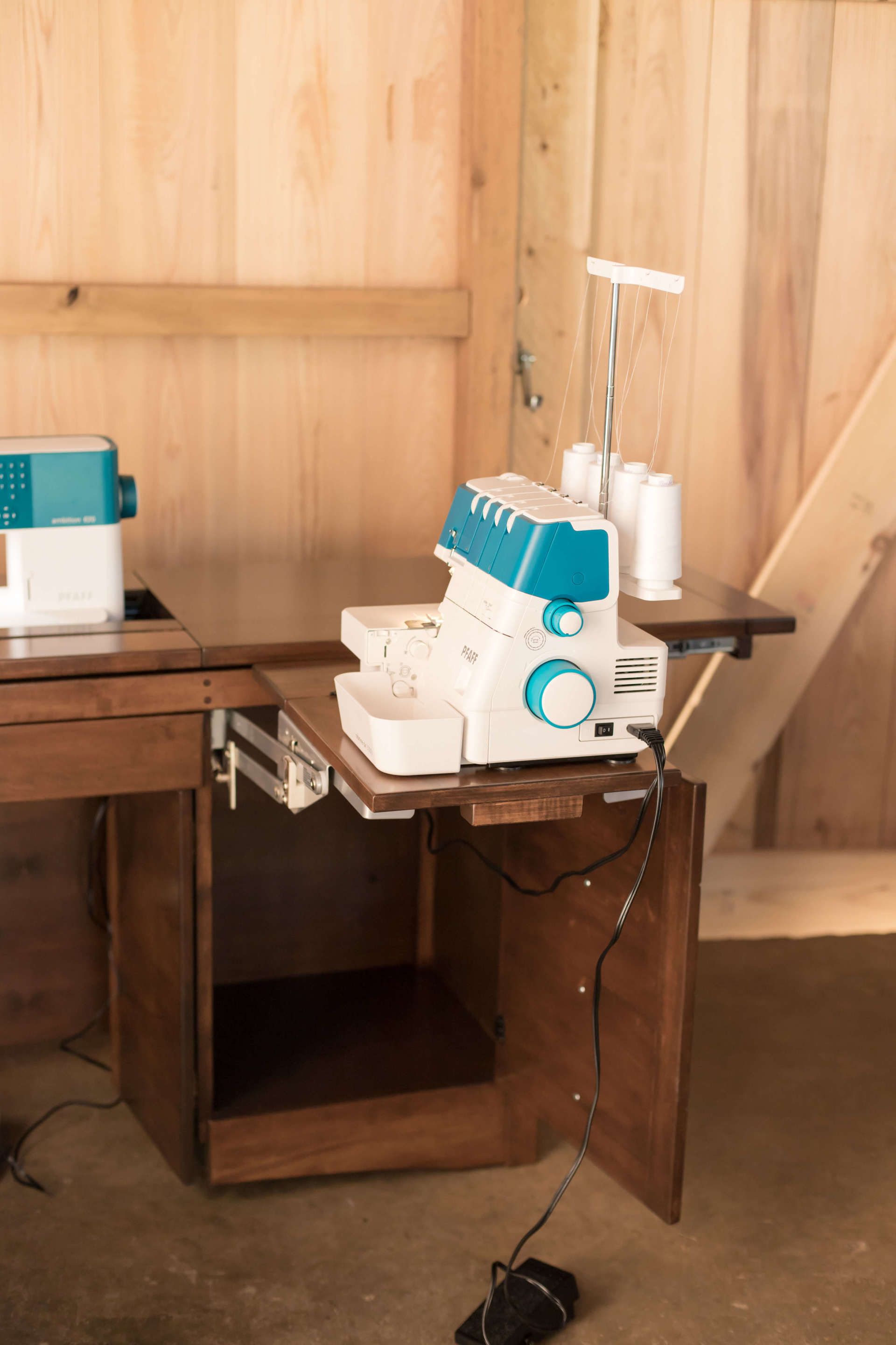 - Serger storage with built-in lift